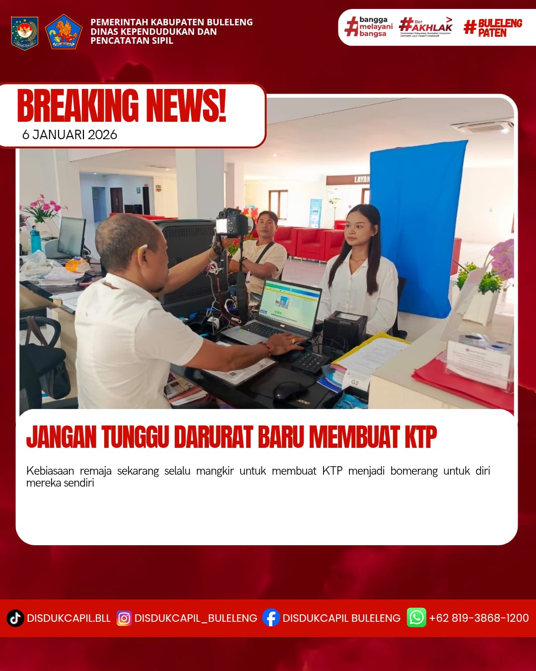 peluang masa depan datang menyapa. Mari sukseskan perekaman KTP, demi keamanan