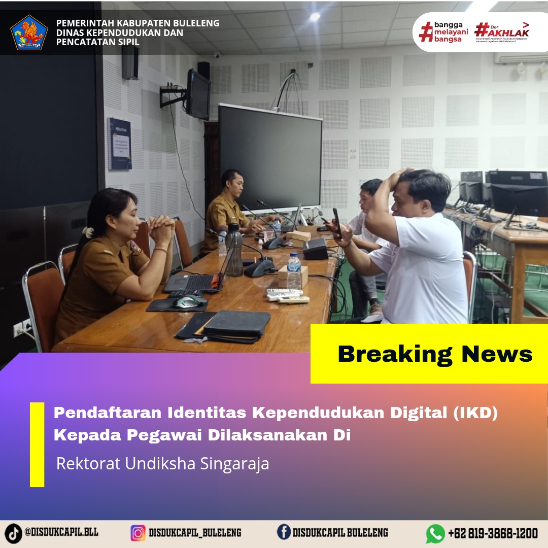 Menerapkan aturan pemerintah tersebut, Dinas Kependudukan dan Pencatatan Sipil Kabupaten Buleleng menyelenggarakan Pendaftaran Identitas Kependudukan Digital ke sekolah-sekolah, Dinas, Lembaga dan Perusahaan secara bergilir setiap harinya. Kali ini pelaksanaan pendaftaran Identitas Kependudukan Digital kepada pegawai yang dilaksanakan di Rektorat Undiksha Singaraja, Senin, (27/10).