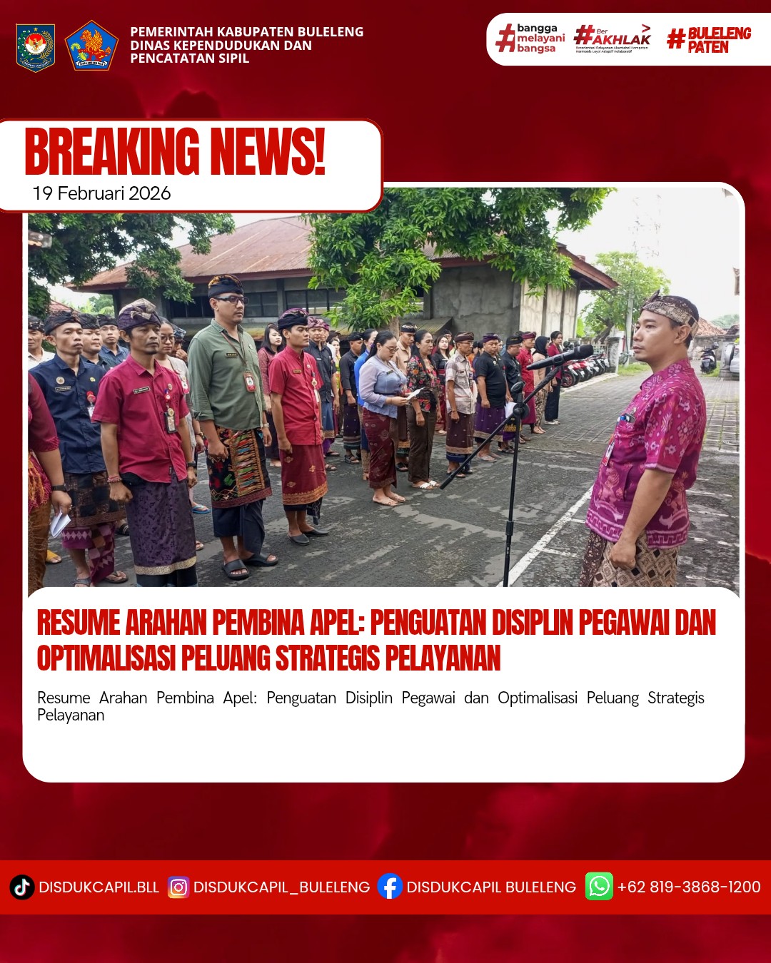 Resume Arahan Pembina Apel: Penguatan Disiplin Pegawai dan Optimalisasi Peluang Strategis Pelayanan