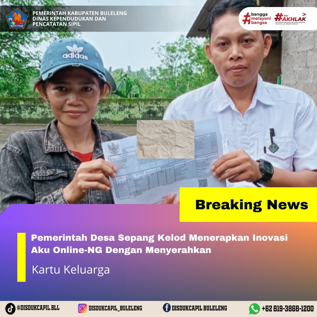 Pemerintah Kabupaten Buleleng melalui Dinas Kependudukan dan Pecatatan Sipil (Disdukcapil) Kabupaten Buleleng memaksimalkan serta mempermudah pelayanan kependudukan masyarakat dengan beberapa inovasi, melalui aplikasi AKU Online. Dimana dalam penerapan aplikasi Aku Online tersebut masyarakat tidak perlu lagi datang ke Dinas Dukcapil untuk melakukan pelayanan langsung cukup dengan datang ke Desa nanti akan dibantu oleh operator Desa masing-masing. Di Desa Sepang Kelod Kecamatan Busungbiu telah diserahkan dokumen kependudukan berupa Kartu Keluarga yang diserahkan oleh Kadus Penataran Bujak Desa Sepang Kelod Kecamatan Busungbiu, Rabu (10/12).