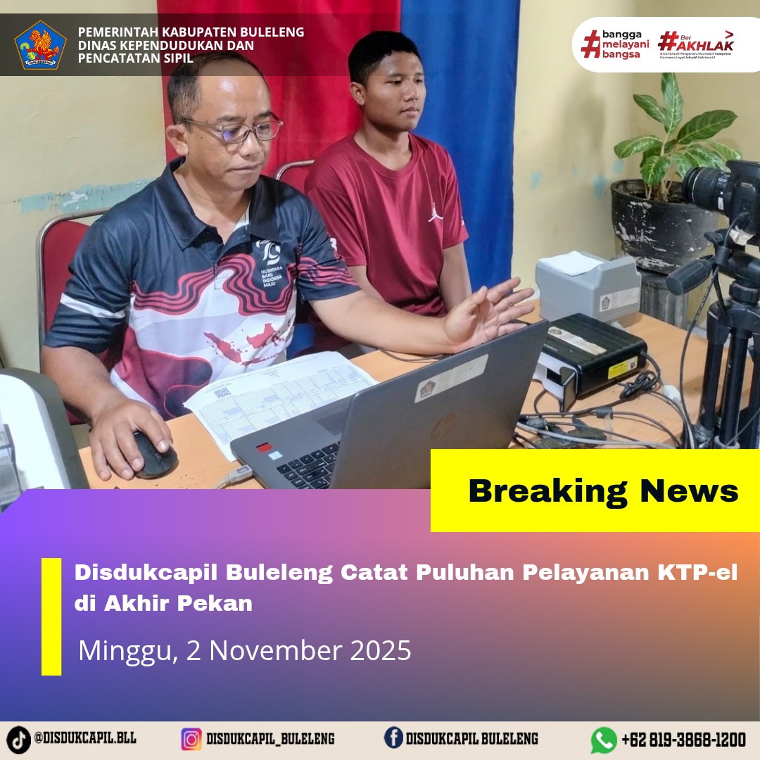 Buleleng, 2 November 2025 – Kantor Dinas Kependudukan dan Pencatatan Sipil (Disdukcapil) Kabupaten Buleleng tetap membuka layanan di hari Minggu, 2 November 2025, dan mencatatkan hasil layanan yang signifikan baik di kantor pusat maupun di tingkat kecamatan. Total 47 layanan cetak KTP-el dan 49 layanan perekaman KTP-el berhasil diselesaikan, menunjukkan tingginya animo dan kebutuhan masyarakat akan dokumen kependudukan.
