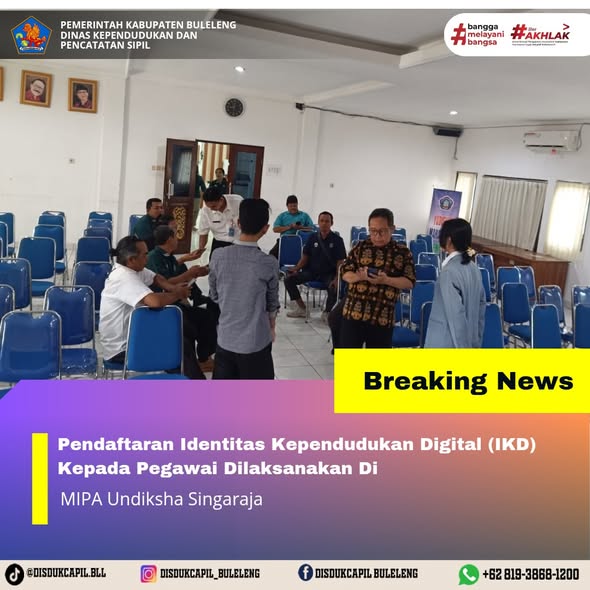 Menerapkan aturan pemerintah tersebut, Dinas Kependudukan dan Pencatatan Sipil Kabupaten Buleleng menyelenggarakan Pendaftaran Identitas Kependudukan Digital ke sekolah-sekolah, Dinas, Lembaga dan Perusahaan secara bergilir setiap harinya. Kali ini pelaksanaan pendaftaran Identitas Kependudukan Digital kepada pegawai yang dilaksanakan di Fakultas MIPA Undiksha Singaraja, Rabu (29/10).