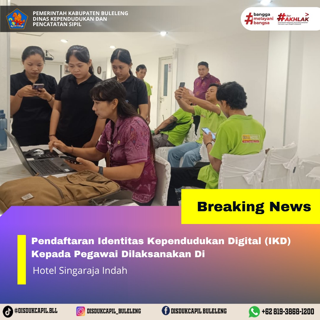 Menerapkan aturan pemerintah tersebut, Dinas Kependudukan dan Pencatatan Sipil Kabupaten Buleleng menyelenggarakan Pendaftaran Identitas Kependudukan Digital ke sekolah-sekolah, Dinas, Lembaga dan Perusahaan secara bergilir setiap harinya. Kali ini pelaksanaan pendaftaran Identitas Kependudukan Digital kepada Pegawai yang dilaksanakan di Hotel Singaraja Indah, Selasa (30/9).