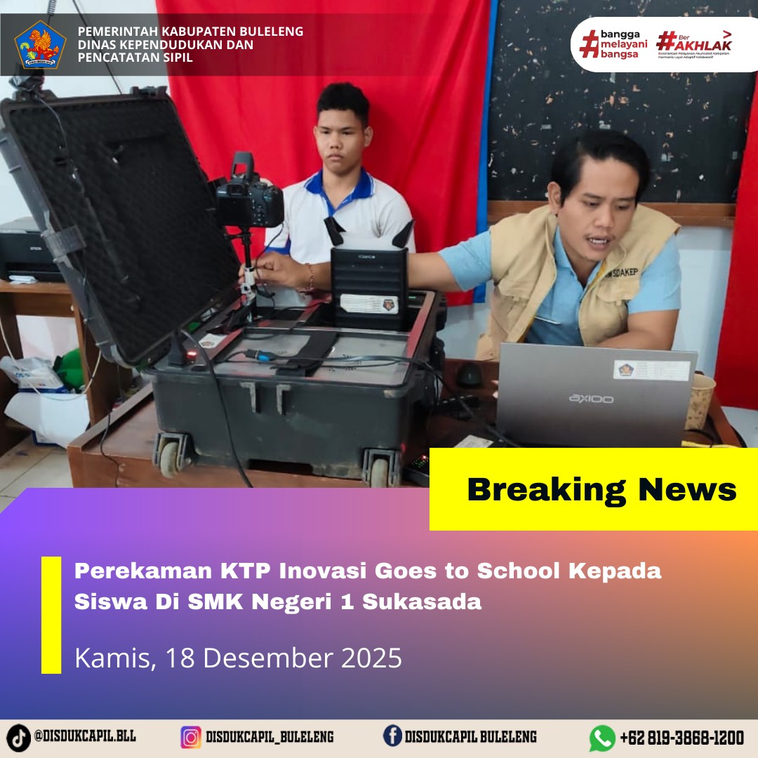 Pada kali ini Kamis, 18 Desember 2025 pelayanan perekaman KTP-el dilaksanakan di SMK Negeri 1 Sukasada. Hasil perekaman di SMK Negeri 1 Sukasada dengan data BNBA sebanyak 131 orang dan total yang melakukan perekaman sebanyak 23 orang, dimana hasil perekaman data tidak ada di dalam BNBA dan di luar BNBA sebanyak 23 orang yang melakukan perekaman. Dilihat dari hasil tersebut sisa data BNBA yang belum perekaman sebanyak 131 orang keterangan dari pihak sekolah masih magang.