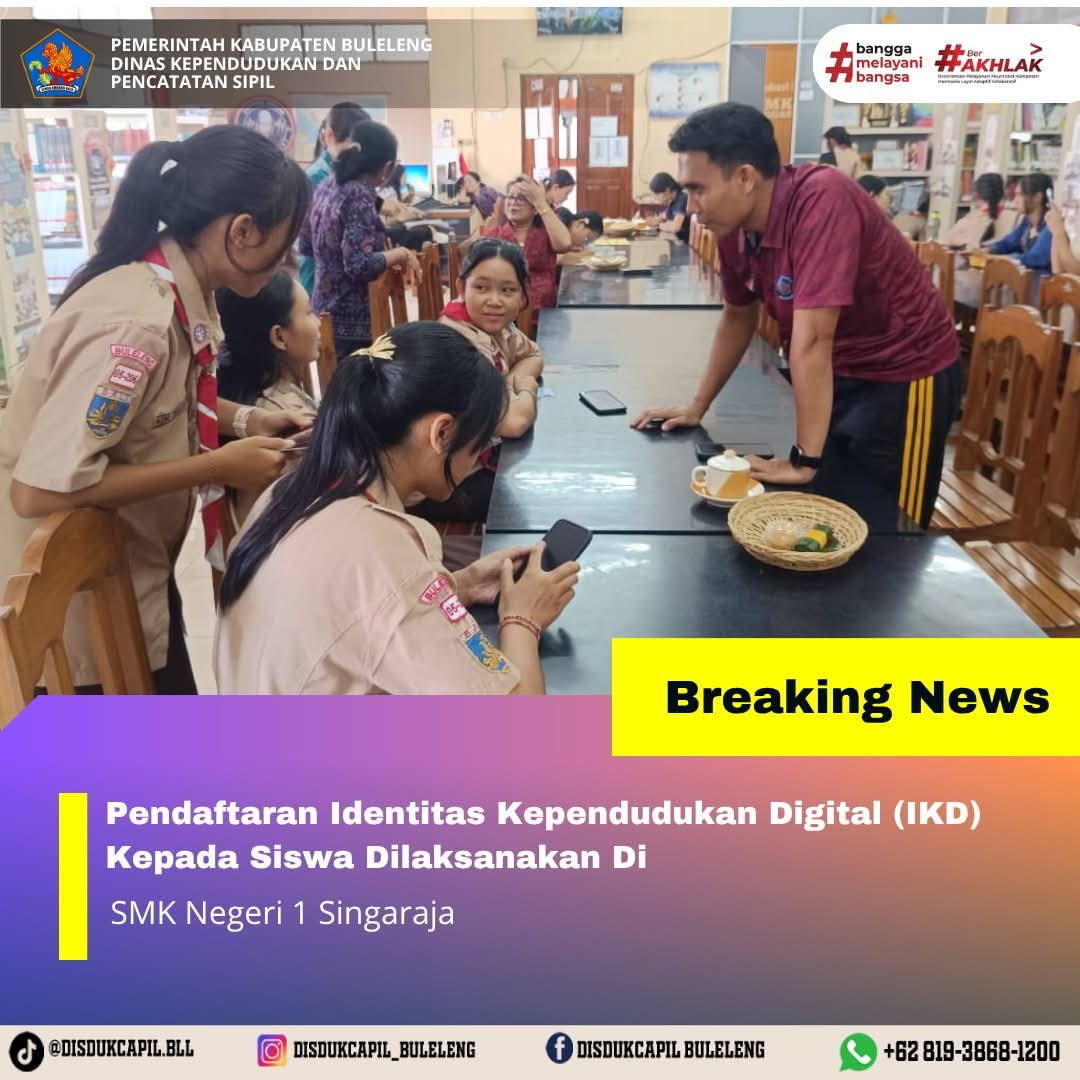 Menerapkan aturan pemerintah tersebut, Dinas Kependudukan dan Pencatatan Sipil Kabupaten Buleleng menyelenggarakan Pendaftaran Identitas Kependudukan Digital ke sekolah-sekolah, Dinas, Lembaga dan Perusahaan secara bergilir setiap harinya. Kali ini pelaksanaan pendaftaran Identitas Kependudukan Digital kepada siswa yang dilaksanakan di SMK Negeri 1 Singaraja, Jumat, (24/10).