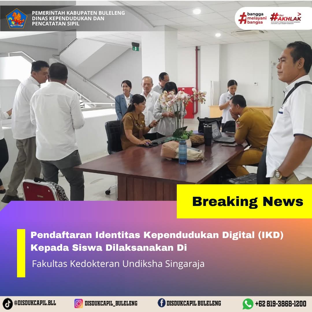 Menerapkan aturan pemerintah tersebut, Dinas Kependudukan dan Pencatatan Sipil Kabupaten Buleleng menyelenggarakan Pendaftaran Identitas Kependudukan Digital ke sekolah-sekolah, Dinas, Lembaga dan Perusahaan secara bergilir setiap harinya. Kali ini pelaksanaan pendaftaran Identitas Kependudukan Digital kepada Pegawai yang dilaksanakan di Fakultas Kedokteran Undiksha, Senin (20/10).