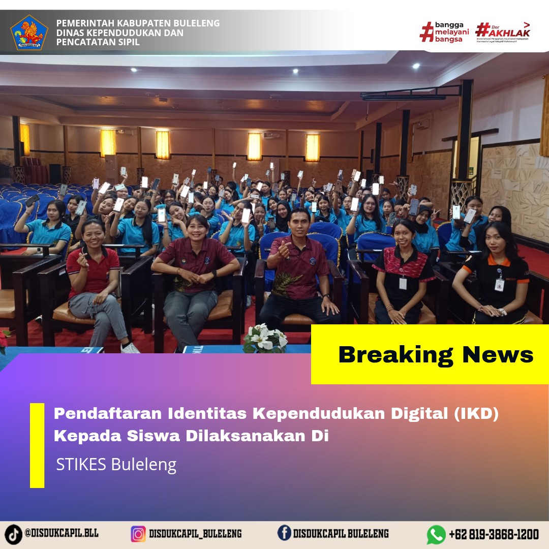 Menerapkan aturan pemerintah tersebut, Dinas Kependudukan dan Pencatatan Sipil Kabupaten Buleleng menyelenggarakan Pendaftaran Identitas Kependudukan Digital ke sekolah-sekolah, Dinas, Lembaga dan Perusahaan secara bergilir setiap harinya. Kali ini pelaksanaan pendaftaran Identitas Kependudukan Digital kepada Mahasiswa yang dilaksanakan di STIKES Buleleng , Jumat (26/9).