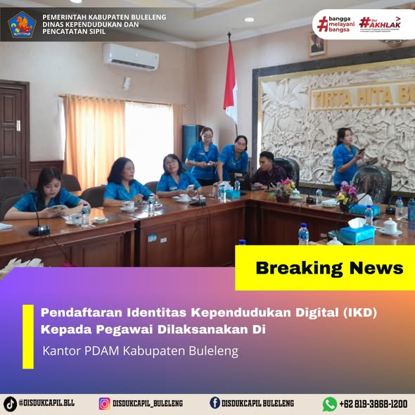 Menerapkan aturan pemerintah tersebut, Dinas Kependudukan dan Pencatatan Sipil Kabupaten Buleleng menyelenggarakan Pendaftaran Identitas Kependudukan Digital ke sekolah-sekolah, Dinas, Lembaga dan Perusahaan secara bergilir setiap harinya. Kali ini pelaksanaan pendaftaran Identitas Kependudukan Digital kepada pegawai yang dilaksanakan di Kantor PDAM Kabupaten Buleleng, Selasa (25/11).