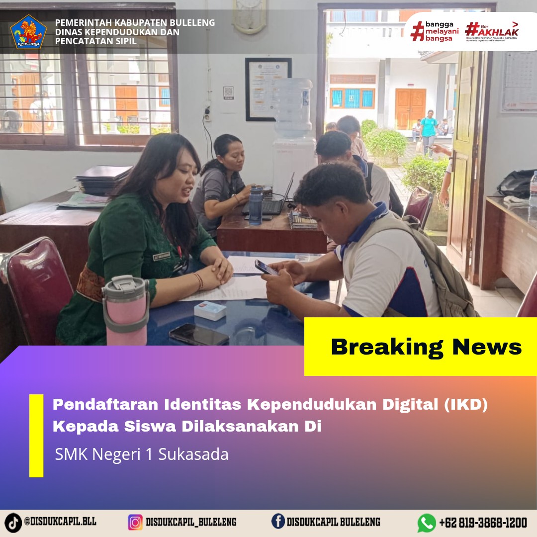 Menerapkan aturan pemerintah tersebut, Dinas Kependudukan dan Pencatatan Sipil Kabupaten Buleleng menyelenggarakan Pendaftaran Identitas Kependudukan Digital ke sekolah-sekolah, Dinas, Lembaga dan Perusahaan secara bergilir setiap harinya. Kali ini pelaksanaan pendaftaran Identitas Kependudukan Digital kepada siswa yang dilaksanakan di SMK Negeri 1 Sukasada, Kamis (18/12).