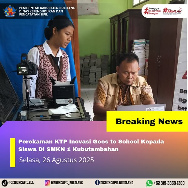 Pada kali ini Selasa, 26 Agustus 2025 pelayanan perekaman KTP-el dilaksanakan di SMKN 1 Kubutambahan. Hasil perekaman di SMKN 1 Kubutambahan dengan data BNBA sebanyak 120 siswa dan total yang melakukan perekaman sebanyak 40 orang, dimana hasil perekaman data di dalam BNBA sebanyak 40 siswa dan tidak ada data di luar BNBA. Sisa data BNBA yang belum perekaman sebanyak 80 siswa, informasi dari sekolah untuk sisa BNBA yang belum melakukan perekaman masih Magang (PKL ).