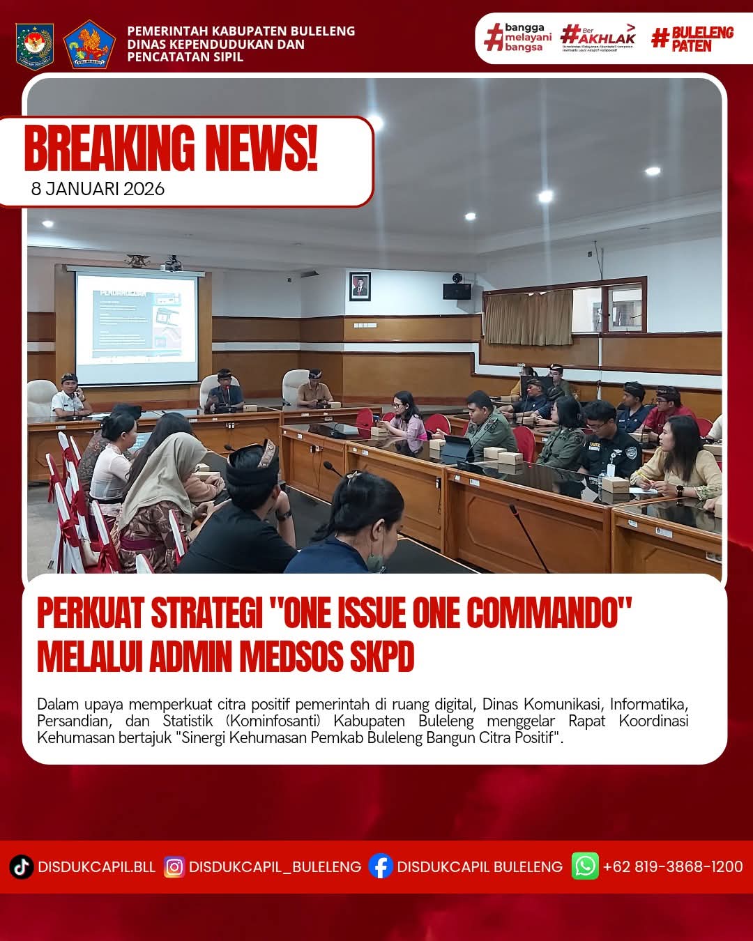 Dalam upaya memperkuat citra positif pemerintah di ruang digital, Dinas Komunikasi, Informatika, Persandian, dan Statistik (Kominfosanti) Kabupaten Buleleng menggelar Rapat Koordinasi Kehumasan bertajuk "Sinergi Kehumasan Pemkab Buleleng Bangun Citra Positif". Acara yang berlangsung di Ruang Rapat Unit IV Kantor Bupati Buleleng ini menghadirkan seluruh admin media sosial dari masing-masing Satuan Kerja Perangkat Daerah (SKPD) di lingkungan Pemkab Buleleng, Kamis (8/1).