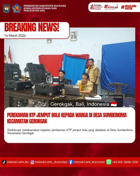 Pada hari ini Senin, 16 Maret 2026 Dinas Kependudukan dan Pencatatan Sipil Kabupaten Buleleng melaksanakan pelayanan Simelik kepada masyarakat untuk melakukan perekaman KTP-El kepada warga di Desa Sumberkima Kecamatan Gerokgak. Dari hasil pelayanan simelik kali ini yaitu :