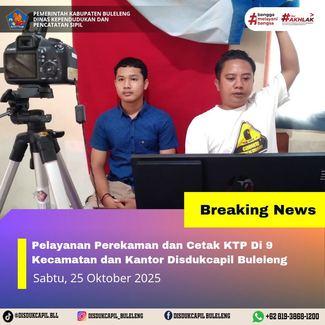 Pemerintah Kabupaten Buleleng, melalui Dinas Kependudukan dan Pencatatan Sipil (Disdukcapil) Buleleng, menunjukkan komitmen kuat dalam menuntaskan target perekaman Kartu Tanda Penduduk Elektronik (KTP-el) di tengah masih banyaknya warga yang belum melakukan perekaman. Sebagai langkah strategis untuk menjangkau masyarakat yang memiliki keterbatasan waktu pada hari kerja, Disdukcapil Buleleng mengambil inisiatif untuk membuka layanan perekaman dan cetak KTP-el di seluruh 9 kantor kecamatan serta di Kantor Disdukcapil Buleleng di akhir pekan, Sabtu (25/10).
