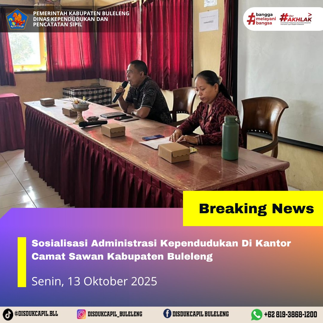 Kecamatan Sawan gencar mensosialisasikan pelayanan administrasi kependudukan (Adminduk). Kali ini, sosialisasi dilaksanakan di Kantor Camat Sawan, dengan mengundang Kepala Bidang Pelayanan dan Pencatatan Sipil Disdukcapil Buleleng, Ketut Sudarmi, SE, MAP, sebagai narasumber utama.