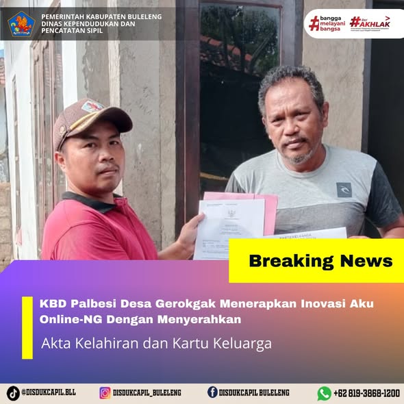 Pemerintah Kabupaten Buleleng melalui Dinas Kependudukan dan Pecatatan Sipil (Disdukcapil) Kabupaten Buleleng memaksimalkan serta mempermudah pelayanan kependudukan masyarakat dengan beberapa inovasi, melalui aplikasi AKU Online-NG. Dimana dalam penerapan aplikasi Aku Online-NG tersebut masyarakat tidak perlu lagi datang ke Dinas Dukcapil untuk melakukan pelayanan langsung cukup dengan datang ke Desa nanti akan dibantu oleh operator Desa masing-masing. Di Desa Madenan Kecamatan Tejakula, telah diserahkan dokumen kependudukan berupa Akta Kelahiran atas nama Ida Bagus Susila dan Kartu Keluarga yang diserahkan langsung oleh Kelian Banjar Dinas Palbesi Desa Gerokgak Kecamatan Gerokgak Kabupaten Buleleng, Senin (24/11).