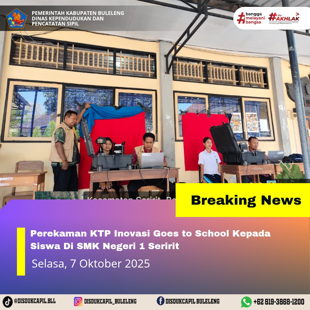 Pada kali ini Selasa, 7 Oktober 2025 pelayanan perekaman KTP-el dilaksanakan di SMK Negeri 1 Seririt. Hasil perekaman di SMK Negeri 1 Seririt dengan data BNBA sebanyak 105 orang dan total yang melakukan perekaman sebanyak 47 orang, dimana hasil perekaman data di dalam BNBA yang melakukan perekaman sebanyak 8 orang dan data di luar BNBA sebanyak 39 orang yang melakukan perekaman. Sisa data dalam BNBA yang belum melakukan perekaman sebanyak 97 orang, keterangan dari pihak sekolah sisa BNBA yang belum melakukan perekaman tidak mau hadir padahal sudah dipanggil lewat pengeras suara.