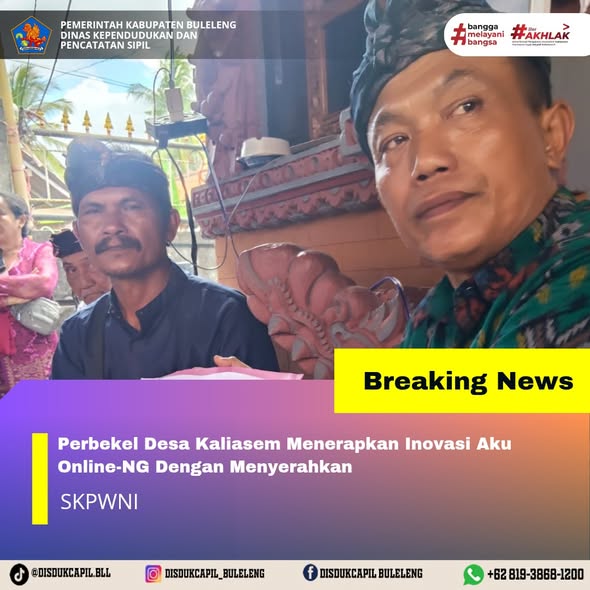 Pemerintah Kabupaten Buleleng melalui Dinas Kependudukan dan Pecatatan Sipil (Disdukcapil) Kabupaten Buleleng memaksimalkan serta mempermudah pelayanan kependudukan masyarakat dengan beberapa inovasi, melalui aplikasi AKU Online. Dimana dalam penerapan aplikasi Aku Online tersebut masyarakat tidak perlu lagi datang ke Dinas Dukcapil untuk melakukan pelayanan langsung cukup dengan datang ke Desa nanti akan dibantu oleh operator Desa masing-masing. Di Desa Kaliasem Kecamatan Banjar telah diserahkan dokumen kependudukan berupa SKPWNI atas nama Ketut Nia Arianti yang diserahkan oleh Perbekel Desa Kaliasem, Sabtu (8/11).
