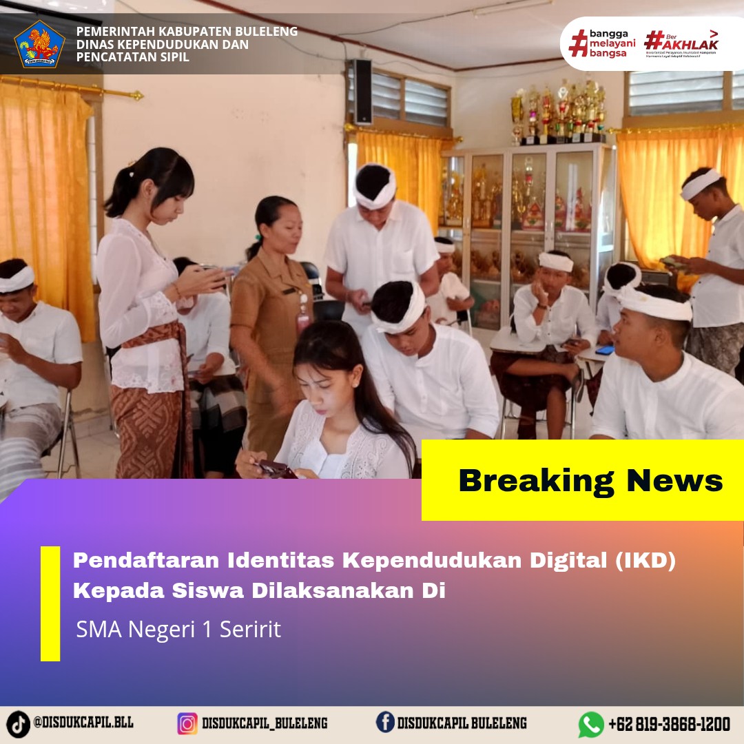 Menerapkan aturan pemerintah tersebut, Dinas Kependudukan dan Pencatatan Sipil Kabupaten Buleleng menyelenggarakan Pendaftaran Identitas Kependudukan Digital ke sekolah-sekolah, Dinas, Lembaga dan Perusahaan secara bergilir setiap harinya. Kali ini pelaksanaan pendaftaran Identitas Kependudukan Digital kepada Siswa yang dilaksanakan di SMA Negeri 1 Seririt, Senin (6/10).