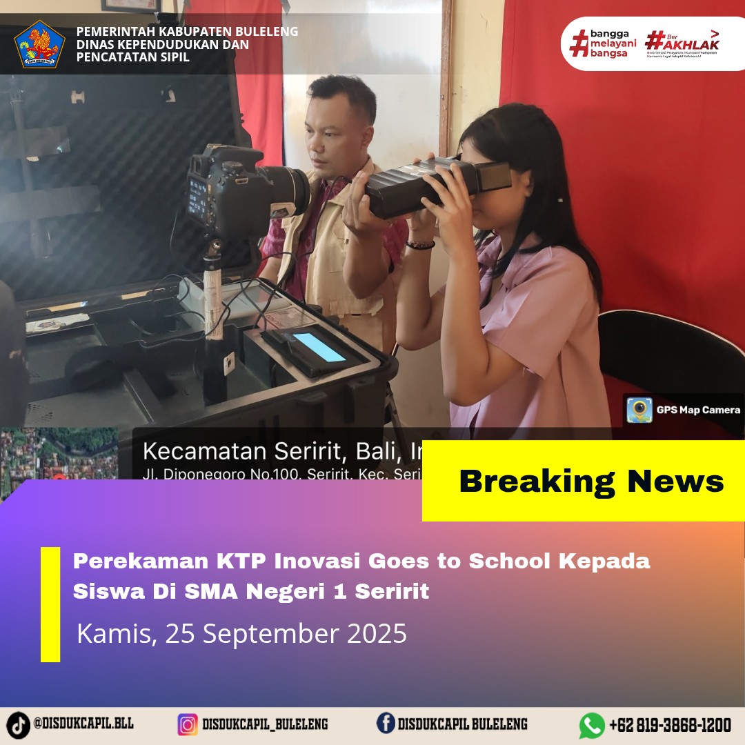 Pada kali ini Kamis, 25 September 2025 pelayanan perekaman KTP-el dilaksanakan di SMA Negeri 1 Seririt. Hasil perekaman di SMA Negeri 1 Seririt dengan data BNBA sebanyak 22 orang dan total yang melakukan perekaman sebanyak 93 orang, dimana hasil perekaman data di dalam BNBA yang melakukan perekaman sebanyak 7 orang dan data di luar BNBA sebanyak 86 orang yang melakukan perekaman. Sisa data dalam BNBA yang belum melakukan perekaman sebanyak 15 orang, keterangan dari pihak sekolah sudah diumumkan oleh pihak sekolah tetapi tetap tidak datang perekaman.