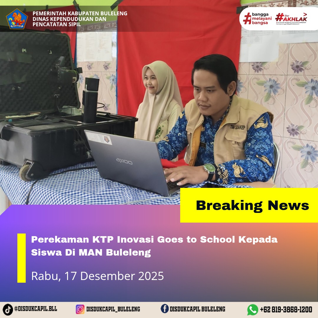 Pada kali ini Rabu, 17 Desember 2025 pelayanan perekaman KTP-el dilaksanakan di MAN Buleleng Desa Patas. Hasil perekaman di MAN Buleleng Desa Patas dengan data BNBA sebanyak 4 orang dan total yang melakukan perekaman sebanyak 24 orang, dimana hasil perekaman data di dalam BNBA sebanyak 3 orang dan di luar BNBA sebanyak 21 orang yang melakukan perekaman. Dilihat dari hasil tersebut sisa data BNBA yang belum perekaman sebanyak 1 orang keterangan dari pihak sekolah tidak hadir karena sakit.