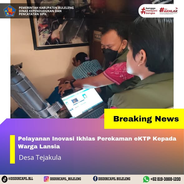 Dinas Kependudukan dan Pencatatan Sipil Kabupaten Buleleng terus berupaya memberikan pelayanan maksimal pada masyarakat dalam rangka meningkatkan kesadaran kepada masyarakat akan pentingnya memiliki dokumen kependudukan salah satunya Kartu Tanda Penduduk (KTP). Berbagai macam inovasi dikembangkan untuk mempermudah masyarakat dapat memiliki dokumen kependudukan. Salah satu Inovasi yang diberikan kepada masyarakat adalah Inovasi "IKHLAS" (Tim Khusus Layanan Untuk Orang Sakit dan Disabilitas) yaitu jembut bola perekaman KTP-el ke rumah warga yang tidak bisa datang langsung ke Kantor Disdukcapil untuk melakukan perekaman eKTP. Sesuai dengan Undang-Undang Republik Indonesia Nomor 24 Tahun 2013 tentang Administrasi Kependudukan, menyatakan bahwa Penduduk Warga Negara Indonesia dan Orang Asing yang memiliki Izin Tinggal Tetap yang telah berumur 17 (tujuh belas) tahun atau telah kawin atau pernah kawin wajib memiliki KTP-el. Namun demikian, ada beberapa penduduk yang tidak bisa datang langsung ke Kantor Dinas Kependudukan dan Pencatatan Sipil Kabupaten Buleleng karena kendala kesehatan dan usia lanjut.