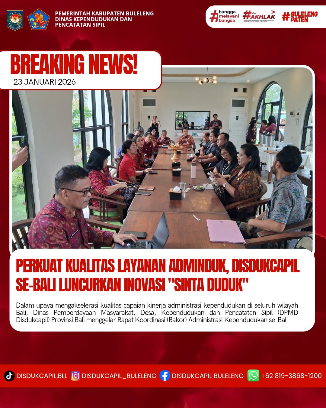 Beranda/Berita/Perkuat Kualitas Layanan Adminduk, Disdukcapil se-Bali Luncurkan Inovasi "Sinta Duduk" di Buleleng